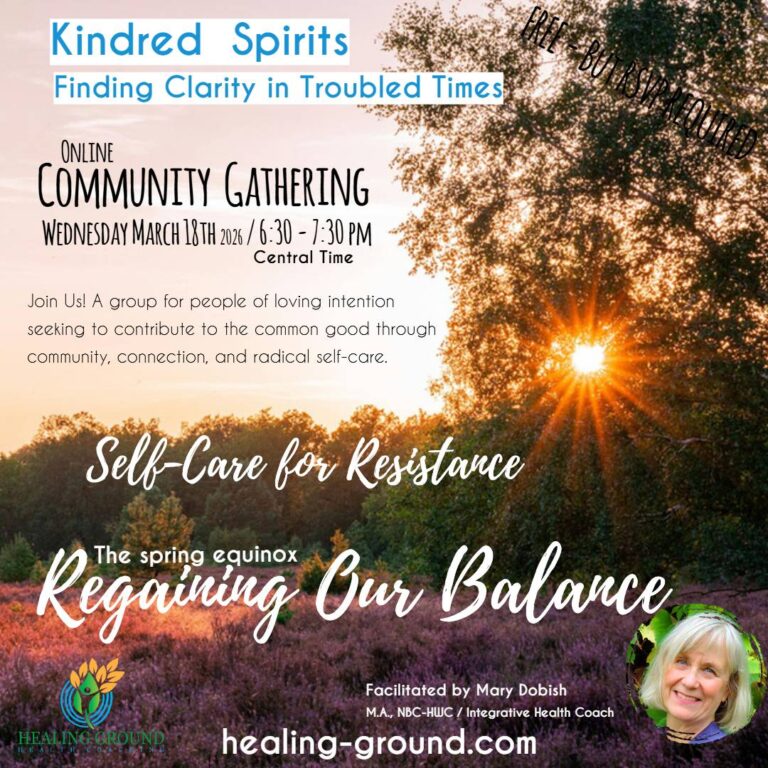 Kindred Spirits is a monthly gathering of those seeking meaningful connections to help us thrive physically, emotionally, and spiritually during times of intense upheaval. The gathering provides a safe space to reflect on how to respond to challenging energetic forces and on how we can best navigate our lives so as to serve the greatest good.